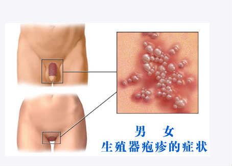 女性症状:女性生殖器疱疹感染后一般约4~7日,外阴患部先有灼热感,随即发生成群丘疹,可为一簇或多簇,继之形成水疱。数日后演变为脓疱,破溃后形成糜烂或浅溃疡,自觉疼痛,后结痂自愈,病程约2~3周。皮损多发于大小阴唇、阴蒂、阴阜、子宫颈等处,亦见于尿道口。